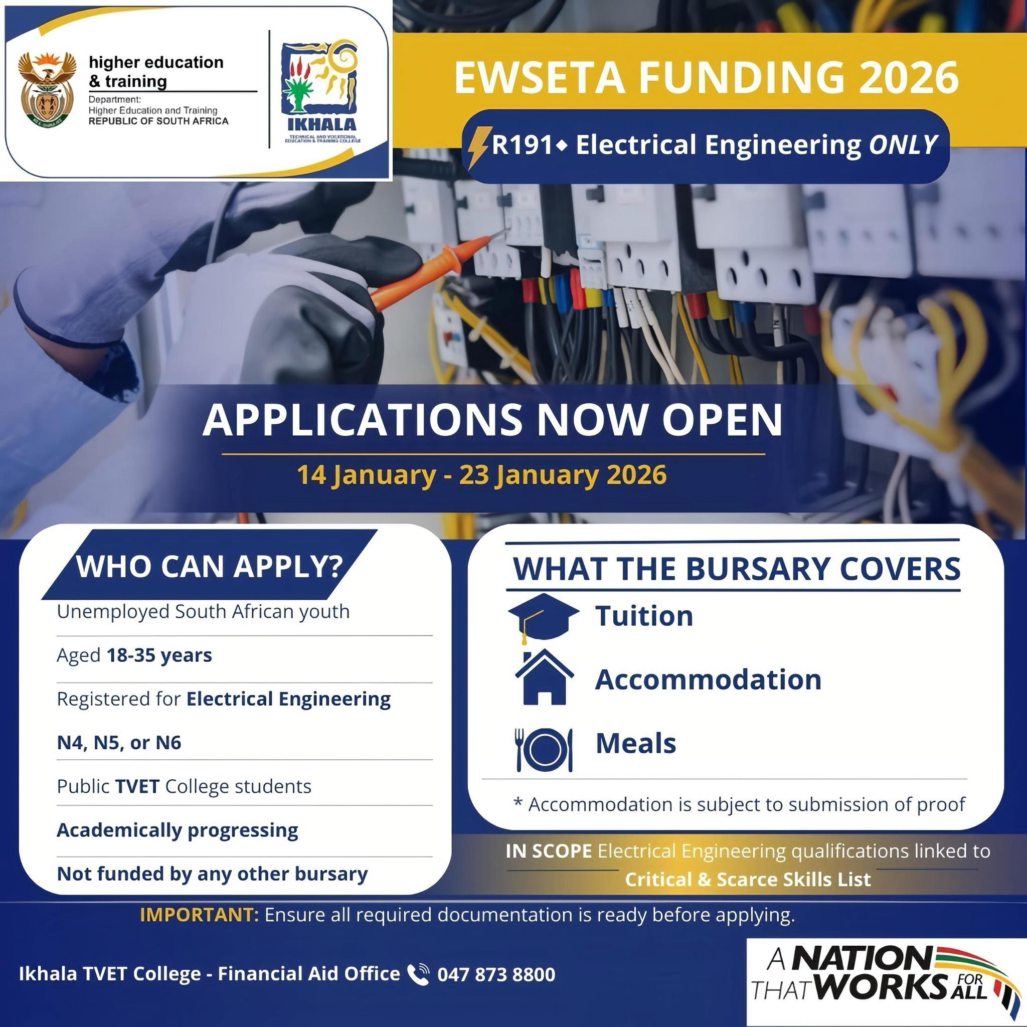 Our students are coming from all over the Eastern Cape, and we have a student population of around 1400.Good news for working professionals and career-focused individuals! Ikhala TVET College has officially extended the online application window
