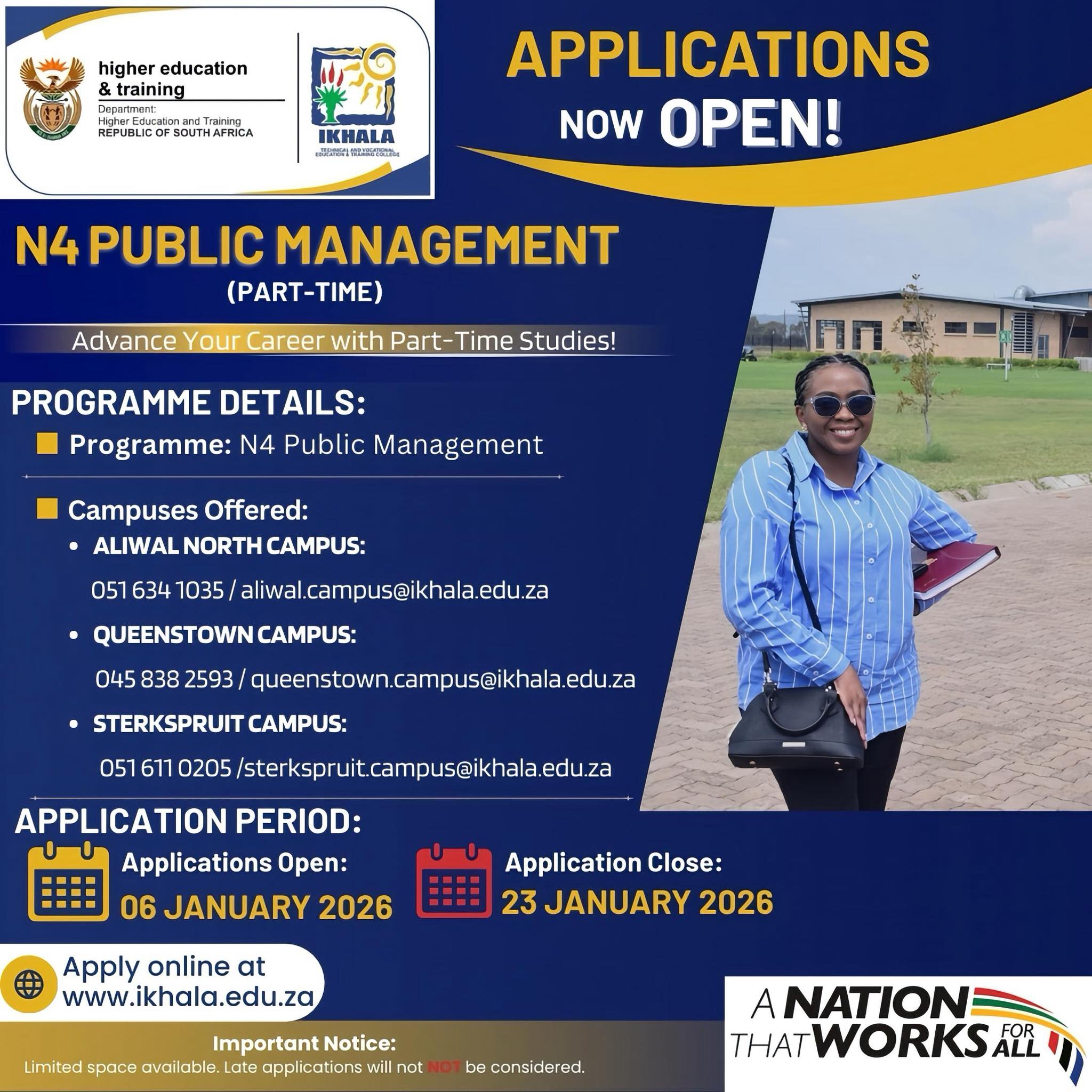 This extension is your opportunity to invest in your future without putting your career on hold. Advance your skills, increase your employability, and step into leadership roles with Ikhala TVET College.